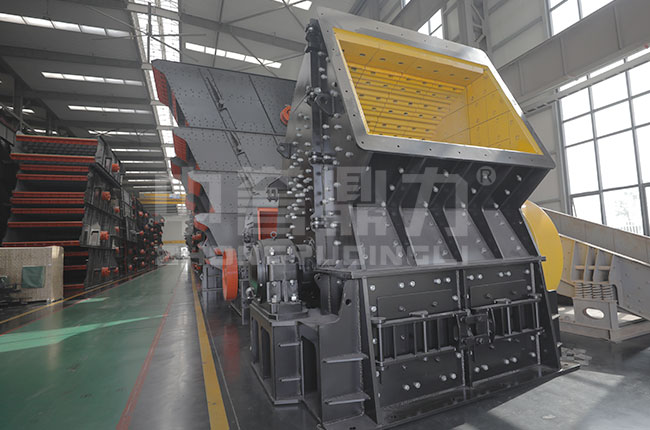 該設備時產量可達1500噸,常用于二級破碎整形,通常放置于重錘式破碎機后面,雖說重錘式破碎機可以一破成型,但有些客戶覺得成品料粒型不好,所以可以搭配上一臺錘式破碎機。錘式破碎機破碎物料抗壓強度小于100兆帕的,含水量要小于10%,負責容易造成出料口堵塞。