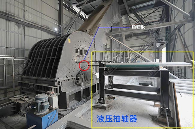 機體設(shè)有觀察門,大型設(shè)備機殼側(cè)板上留有抽軸孔,更換錘頭和錘軸只需卸掉外側(cè)的擋軸板,通過液壓抽錘軸裝置就可方便、快捷的更換,省時省力。