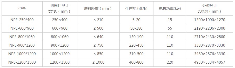 顎式破碎機型號技術規格