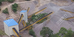 待破碎物料由兩用型振動給料機輸送至破碎機腔內,破碎機通過“石打石,石打鐵、鐵打石”的原理將物料進行初級破碎,破碎物料經振動篩篩分獲得一部分成品料,另一部分物料由皮帶輸送機返料輸送至二級破碎機進行再次破碎整形處理工作,獲得合乎規格的高質量成品砂石料。