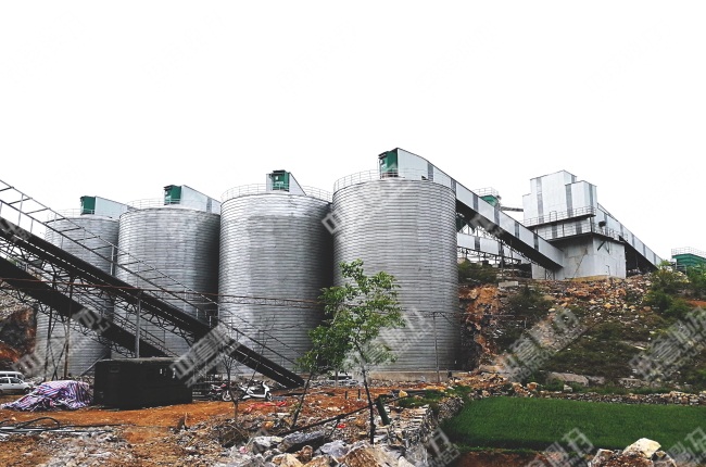 生產(chǎn)線引入中譽鼎力PCZ1615重型錘式反擊式破碎機、PC1216整形式破碎機等設(shè)備,時產(chǎn)量600噸;各個環(huán)節(jié)均采取封閉措施,杜粉塵外溢。例如在儲料環(huán)節(jié)引入封閉的儲料罐,便于分類儲存銷售。針對生產(chǎn)線中產(chǎn)生的石粉,加裝除塵器進行集中收塵,后續(xù)集中利用,再次銷售。