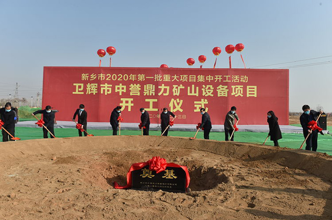 2月23日上午,在衛輝市產業集聚區隆重舉行新鄉市2020年批重大項目集中開工活動衛輝市中譽鼎力礦山設備項目開工儀式。新鄉市市長王登喜,副市長祁文華,市秘書長劉勇,衛輝市市委書記梁常運,新鄉市人大原副主任、唐莊鎮黨委書記吳金印,衛輝市市長范士富等導出席開工儀式。