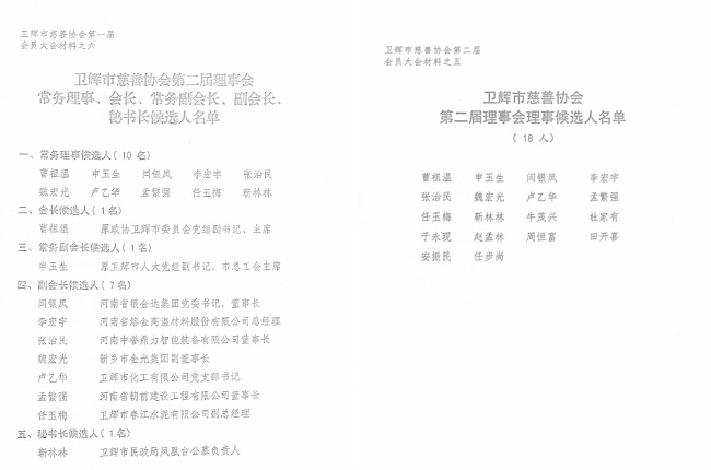 衛輝市慈善協會,是由熱心慈善事業的中公民、依法成立的企事業單位、社會團體、民辦非企業單位及其它社會組織自愿參加的市性非營利公益慈善社會組織。理事會理事主要由愛心企業、社會組織的代表和社會人士、慈善志愿者構成,經會員代表大會選舉產生;會長、副會長、秘書長、常務理事由理事會選舉產生。