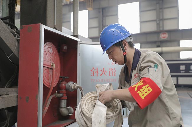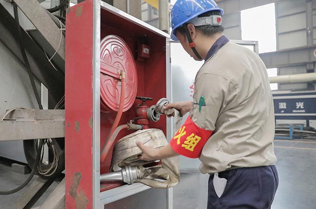 “起火啦,起火啦~”隨著急促呼喊聲和火情信息逐級上報,中譽鼎力生產車間體員工緊急集合,消防應急綜合演練正式啟動。