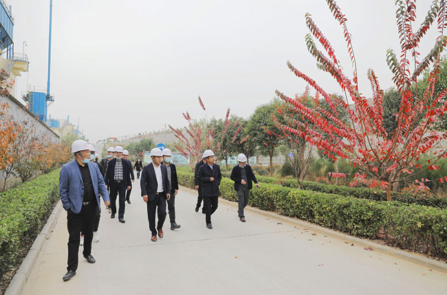 然后,考察團一行前往中譽鼎力投資建設的多位一體循環建材產業園項目——衛輝市藍天環保材料有限公司“四位一體”大型建材項目實地參觀。參觀期間,考察團成員不僅對該項目所具備的綠色、智能、集約、等優勢有了進一步認識,并在生產現場一睹中譽鼎力履帶式錘破移動破碎站的風采。