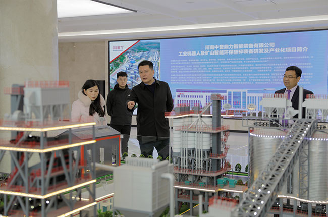 隨后,考察導走進位于衛輝市產業集聚區的河南中譽鼎力智能裝備有限公司,先后參觀了公司的礦山管理云數據中心、多媒體展示中心等,對中譽鼎力的做事理念、主營業務及榮譽資質等有了進一步了解。