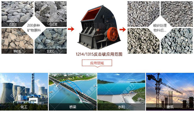 1214/1315反擊破碎機的使用范圍許多,可被用在冶金、選礦、公路、鐵路、城市投建等域發揮其價值,以下是1214/1315反擊破在選礦、公路等工程項目域運用的例子: