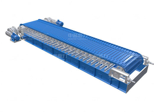 鏈條采用坦克鏈傳動(dòng),強(qiáng)度高,拉力大,設(shè)備使用壽命長。安裝時(shí)可直接與原料倉接觸,承重力強(qiáng)。