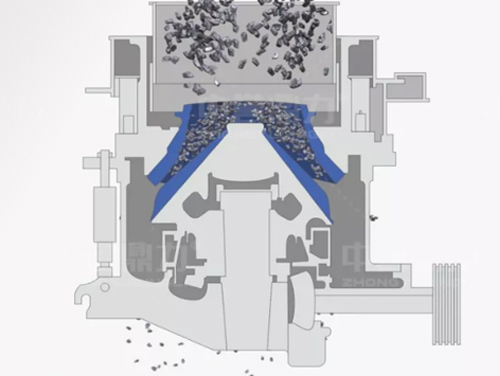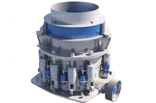 多缸液壓圓錐破碎機(jī)結(jié)構(gòu)簡單,由電機(jī)、傳動軸、齒輪、偏心套、定錐、動錐等部分組成,采用擠壓式的工作原理,電機(jī)通過三角帶、傳動軸、傘齒輪副帶動偏心套旋轉(zhuǎn),動錐在偏心套的帶動下做旋擺運動。定錐和動錐時而靠近、時而偏離,360度對破碎腔內(nèi)的物料擠壓、搓攆破碎,破碎后的物料從下方排料口排出機(jī)腔。