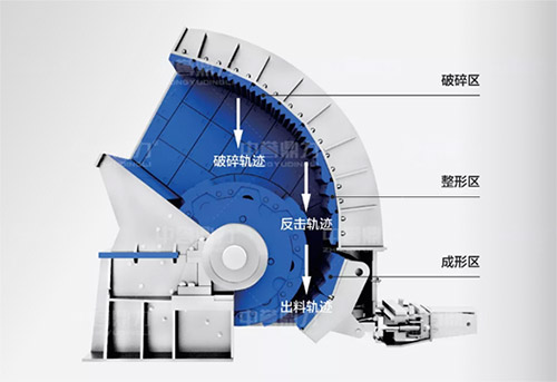 通過三大反擊區、成品料自流、可調節式反式襯板等多處匠心的設計,成品料級配合理,產粉量低,可以滿足客戶的多樣化要求。