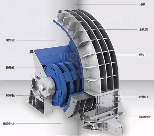 在傳統錘式破碎機、反擊式破碎機、廂式破碎機及各種用錘頭或板錘對石料進行打擊破碎的機械原理上,結合三十多年石料破碎經驗,設計出重型錘式反擊破碎機。