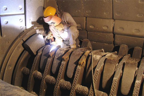 設計不合理,每天都要鋪焊焊條,費工費時,減少開機時間,鋪焊產生的熱量例轉子盤內應力增加,盤體壽命