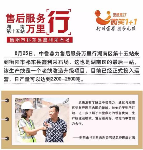 走訪衡陽(yáng)市祁東縣鑫利采石場(chǎng),售后服務(wù)萬(wàn)里行湖南站接近尾聲