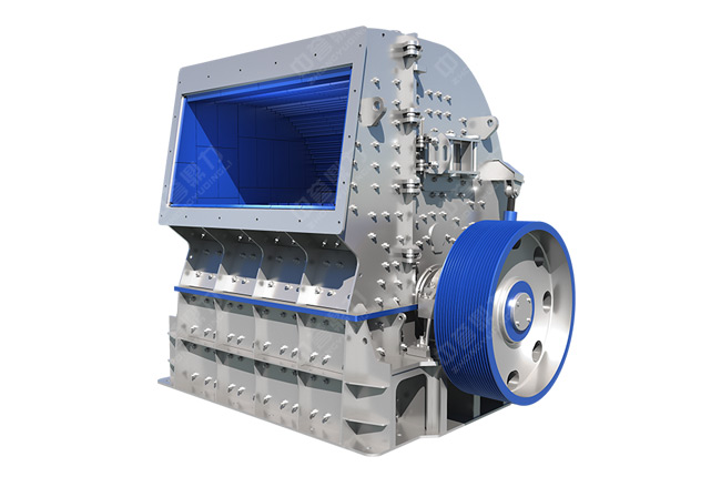 開采下來的石灰石原料運輸到現場后,直接倒入料倉中,經過振動給料機輸送到初級破碎設備(如重型錘式破碎機),破碎后的物料進入中轉料倉,后經振動給料機輸送到二級破碎設備(如整形錘式破碎機)進行細碎,得到更小顆粒物料,破碎后的小顆粒物料經過振動篩,大于31.5mm的物料被返回二級破碎設備,小于31.5mm的被輸送到下一組篩分設備,篩分出不同粒級的成品料。