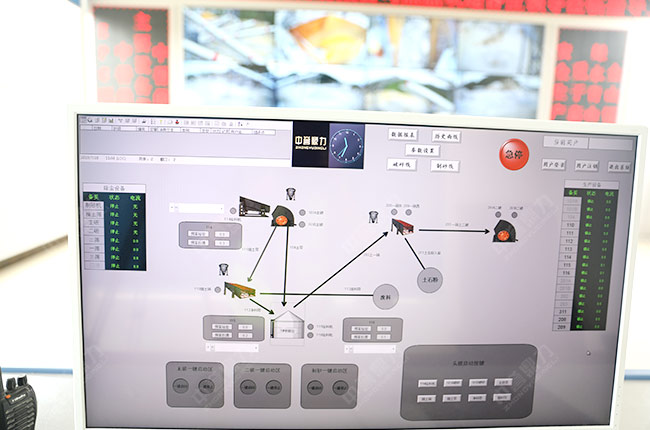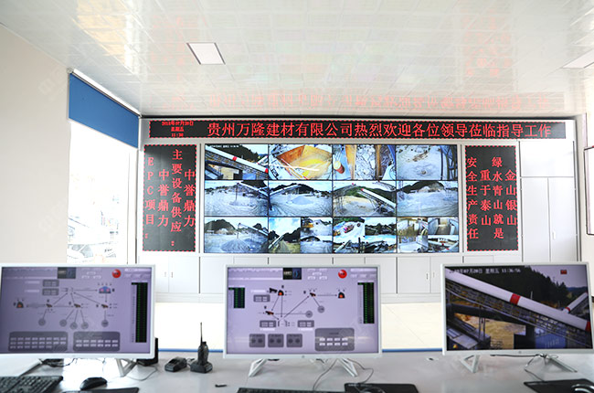 貴州省萬隆建材生產線砂石生產智能管理系統的總控制室,各設備的生產畫面掌控